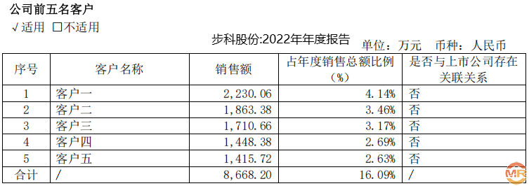 这种数据矛盾并非偶然。回溯至2022年,海昌智能披露向步科电气的采购金额为2012.71万元,而步科股份同年年报显示的前两大客户销售金额分别为2230.06万元和1863.38万元,同样无法与海昌智能的数据匹配。作为重要的供应商关系,连续多年的数据差异不得不让人质疑其中是否存在信息披露不实的问题。