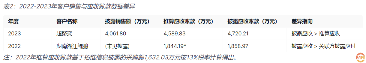 历史数据亦存异常,信披质量堪忧。。回溯至2023年,公司披露对客户超聚变的应收账款余额为4,720.21万元(账龄6个月内),但当年披露的对该客户的销售额仅为4,061.80万元。即使加上13%的增值税,形成的理论应收账款(4,589.83万元)仍比披露的余额少130.38万元。这指向了另一种可能性:公司是否对部分收入进行了隐瞒或未充分披露?