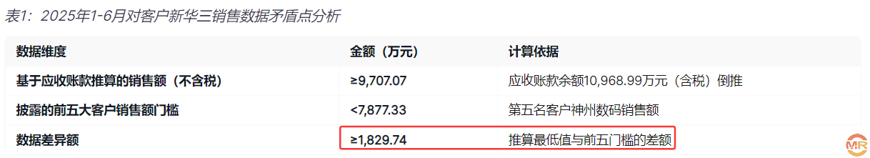 最刺眼的矛盾出现在2025年1-6月的数据中。招股书披露,截至2025年6月30日,公司对第一大应收账款客户新华三的账面余额高达10,968.99万元,且账龄在6个月以内。按商业逻辑,这通常意味着当期对该客户的含税销售额至少不低于此金额。据此推算,其当期对新华三的不含税销售额应不低于约9,707.07万元。
