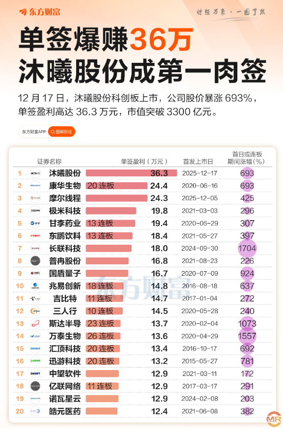 中一签36万!沐曦股份科创板上市 成近十年最赚钱新股