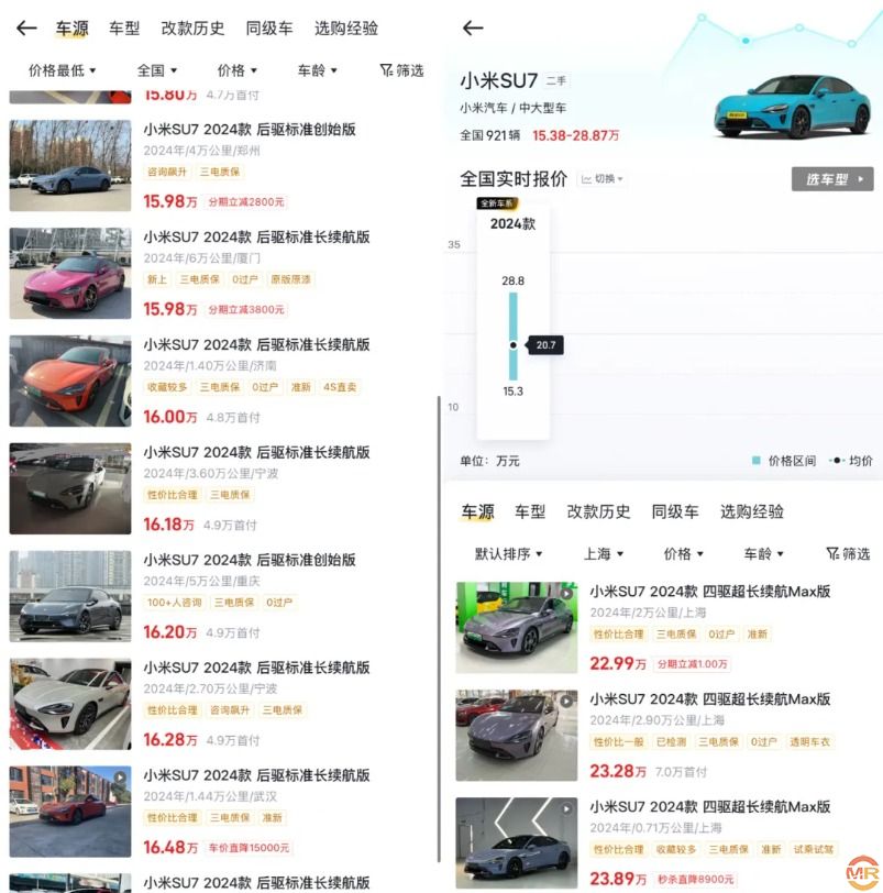 小米二手车价大跳水:SU7半年跌5万元